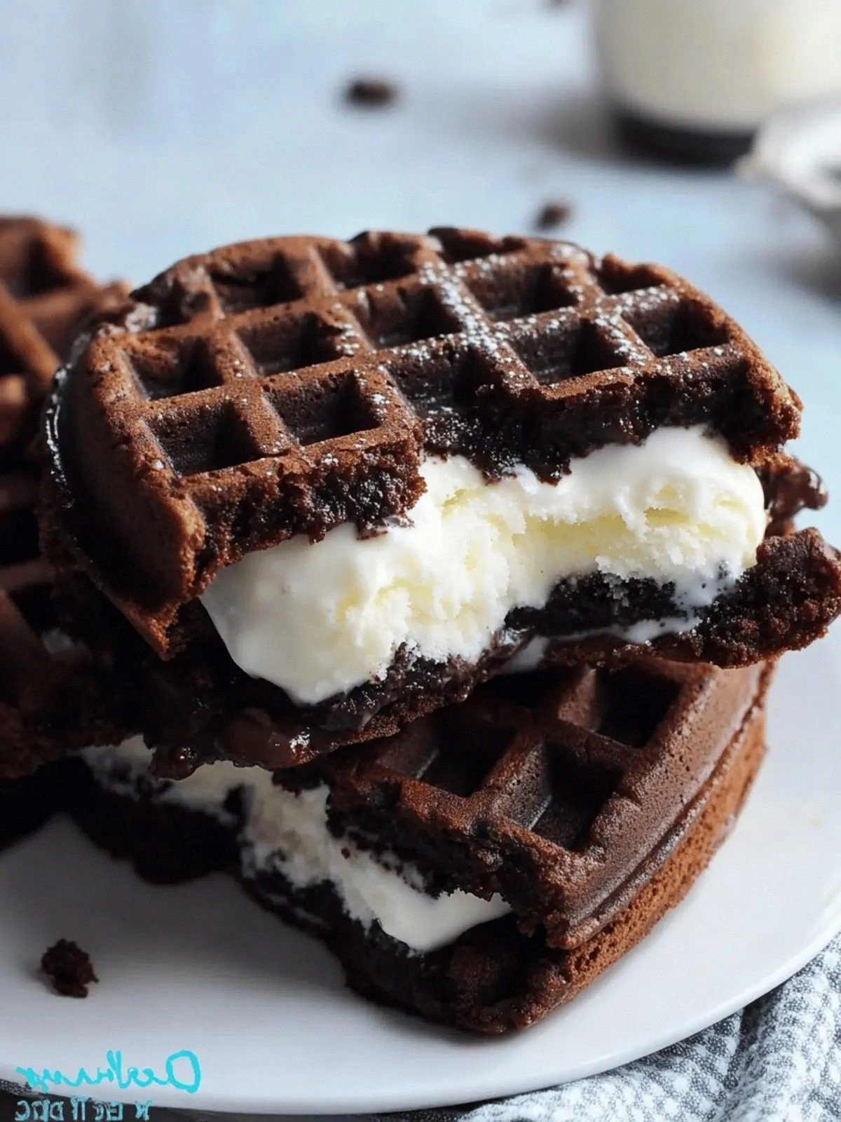 2 cups of vanilla ice cream are the secret to the sandwich’s melt‑in‑your‑mouth sensation. Vanilla provides a creamy backdrop that balances the intense chocolate. If you’re vegan, a dairy‑free vanilla gelato works just as well, but keep the texture firm to avoid too much liquid. If you want a cooler, thicker bite, chill the ice cream a bit longer before assembly. The ice cream’s temperature is crucial; too warm, and it will melt before the waffle cools.