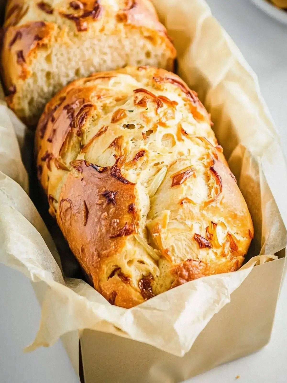 - Texture: The crust is crisp and buttery, the crumb is airy and moist, and the cheese melts into a gooey ribbon that runs through each slice. The onions are so soft they practically dissolve, giving the loaf a unique mouthfeel that feels almost like a pastry. The result is a bread that feels indulgent without being greasy.