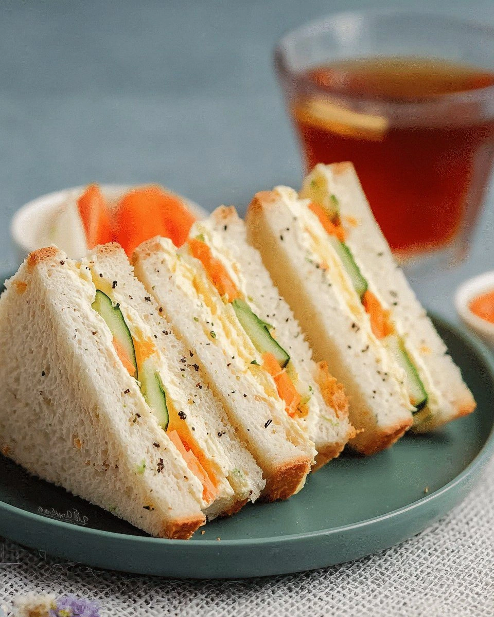 The secret sauce here is the blend of dill and lemon that cuts through the sweetness, giving the sandwich a bright, almost citrusy lift. The bread is toasted just enough to be crunchy on the edges yet soft inside, creating a contrast that keeps each bite exciting. The cucumber and carrot are sliced thinly, ensuring they’re light enough not to overpower the sauce but thick enough to hold their shape. The final touch? A hint of garlic in the mayo that adds depth without making it feel like a heavy dish. This sandwich isn’t just a side; it’s an experience that turns an ordinary lunch into a moment of culinary delight.